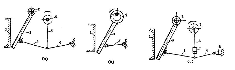 (a)-簡擺鄂式破碎機(jī);(b)-復(fù)擺鄂式破碎機(jī);(c)-液壓鄂式破碎機(jī)