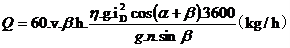 物料平均輸送速度是在一定的假設(shè)條件下建立的運(yùn)動方程式,而實(shí)際的運(yùn)動要復(fù)雜得多。另外物料的堆積重度、形狀、含水率,對輸送速度都有影響,因此在算出理論平均速度后還須進(jìn)行修正。物料輸送機(jī)的輸送量Q為:
